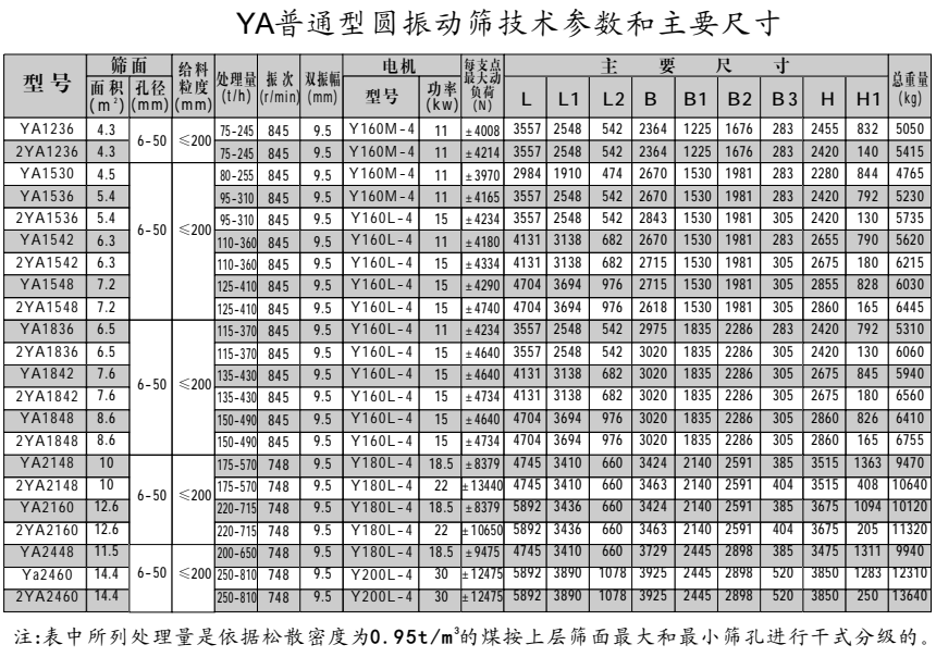 產品簡介:YA系列圓振動篩運動軌跡為圓形,可供煤炭、礦山、冶金、建材、電力、水利、輕工和化工等行業各種物料分級使用。該系列篩機采用高強度螺栓聯接框架式結構,大游隙軸承稀油潤滑的振動器。具有結構堅固耐用、噪聲低、維修方便等優點。